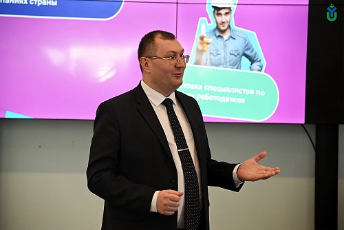 Открыл мероприятие Александр Гомзяк, заместитель директора – начальника управления непрерывного профессионального образования и науки Депобразования и науки Югры. Он рассказал присутствующим об актуальности федерального проекта и в чем заключается его основная цель: «Основная цель заключается в синхронизации рынка труда. Проще говоря, это подготовка специалистов под запрос конкретных предприятий, которые входят в кластер «Профессионалитет». Если говорить об этом более детально, то следует отметить несколько аспектов. Первый из них – это ускоренное обучение. Второй – увеличение количества практических занятий, в том числе и на предприятии. На сегодняшний день у предприятий наблюдается большой дефицит в сотрудниках, т.е. есть запрос, а данный проект этому запросу полностью соответствует».