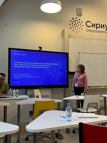 Светлана Борисовна представила работу по теме «Сезонное развитие Dactylorhiza hebridensis (Billmot) Aver в разных условиях произрастания в природном парке «Самаровский чугас». Работа важна для сохранения орхидей в условиях северных территорий.