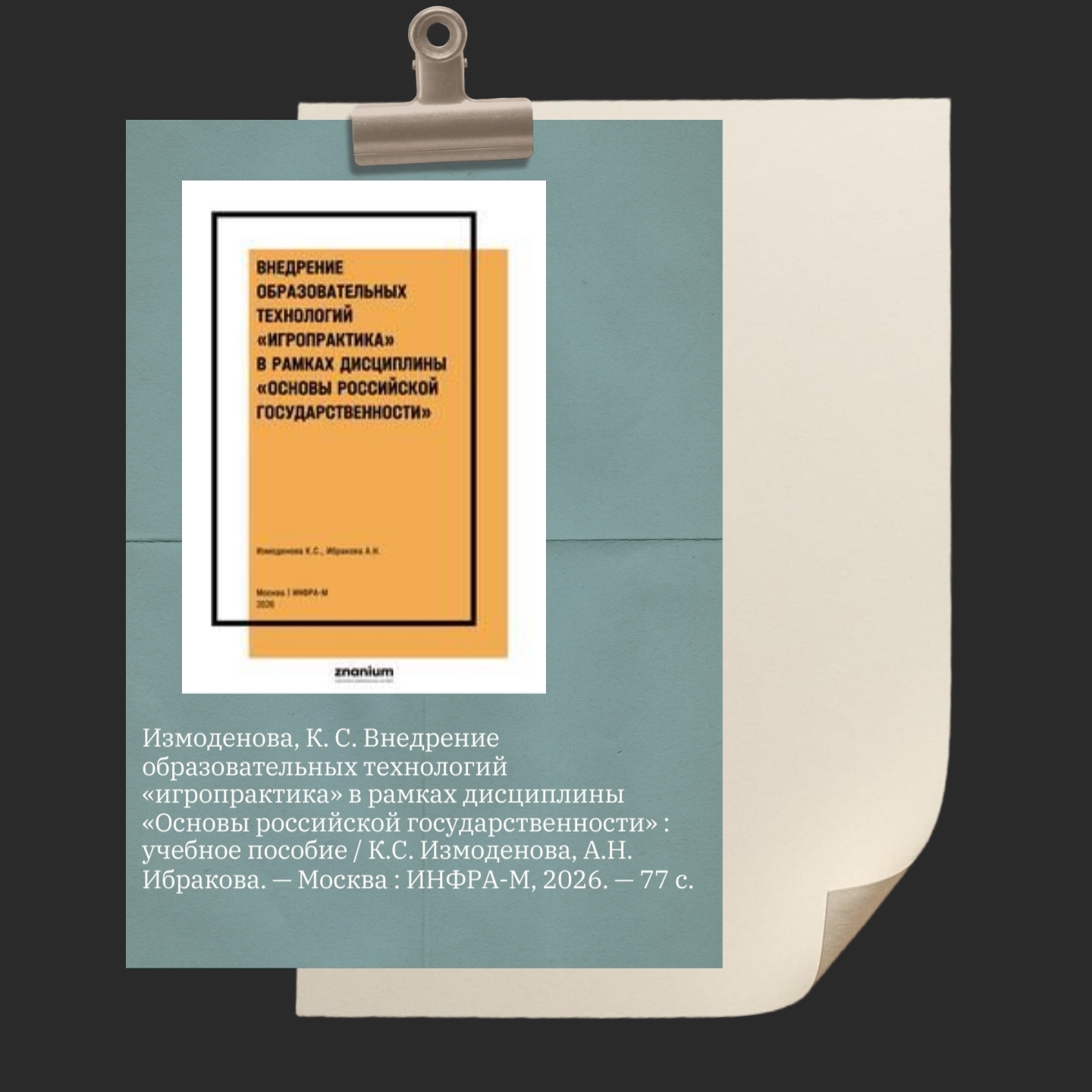 Ксения Измоденова и Айзанат Ибракова стали авторами учебного пособия: «Внедрение образовательных технологий «игропрактика» в рамках дисциплины «Основы российской государственности».