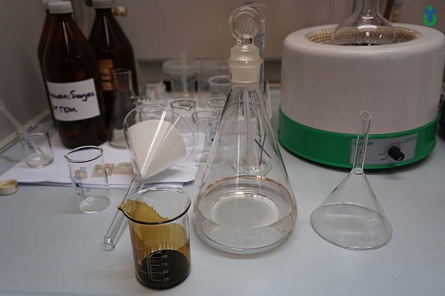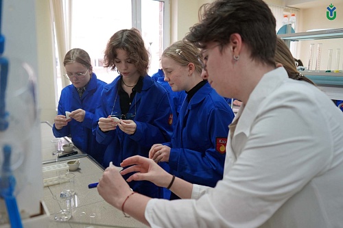 Как из олигомера сделать полимер, школьники узнали в лаборатории общей химии. Здесь учащимся рассказали про полимеризацию и предложили окунуться в мир высокомолекулярной химии.