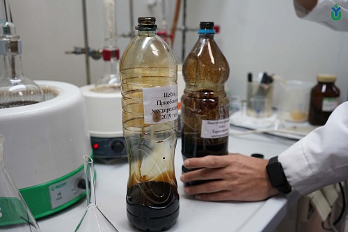 В лаборатории химии нефти школьникам показали, как нефть разделяется на компоненты, рассказали о методах анализа нефти, а также провели опыт по получению прямогонного бензина на установке для определения фракционного состава нефти. Общую экскурсию по лаборатории провел старший преподаватель Высшей нефтяной школы ЮГУ Евгений Осницкий. Евгений Михайлович также рассказал школьникам принцип работы газового хроматографа, автоматического прибора для определения плотности и установки для определения вязкости нефти.