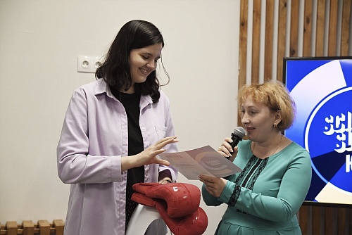 Мы от всей души поздравляем её и желаем успехов, теперь ей предстоит отправиться на региональный этап научных боев.
