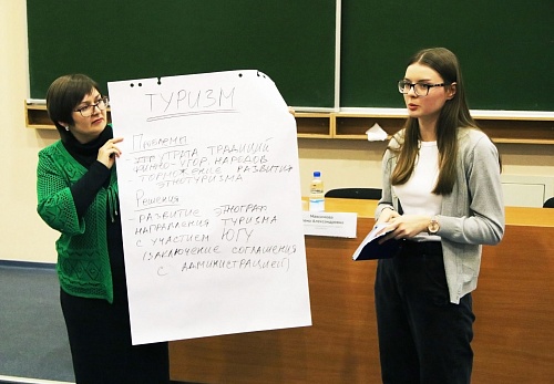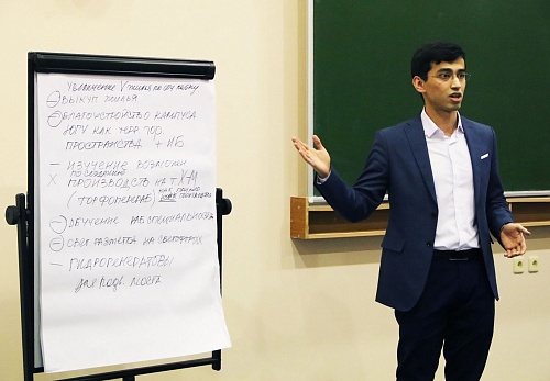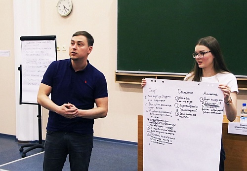 И действительно, студенты Югорского государственного университета предложили несколько идей проектов. Например, Темур Мансуров выступил с идеей благоустройства кампуса ЮГУ как городского пространства. Сильвия Старунь рассказала о том, как можно развивать этнографическое направление туризма с участием ЮГУ. Алексей Снигирев озвучил предложение о создании городского портала для обмена информацией, проблемами и идеями между студентами и предприятиями.