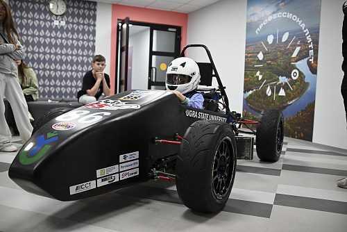 «Наш пилот Екатерина Савекина в этом году защищала бизнес-план по созданию болида на английском языке», - рассказал школьникам доцент Политехнической школы ЮГУ Владимир Назаров.