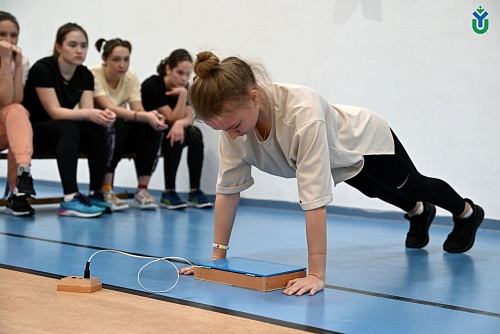 Участники олимпиады показали свои силы в прыжках в длину с места, подтягивании (юноши), отжимании (девушки), наклоне вперед из положения стоя на гимнастической скамье, а также поднимании туловища из положения лежа на спине.
