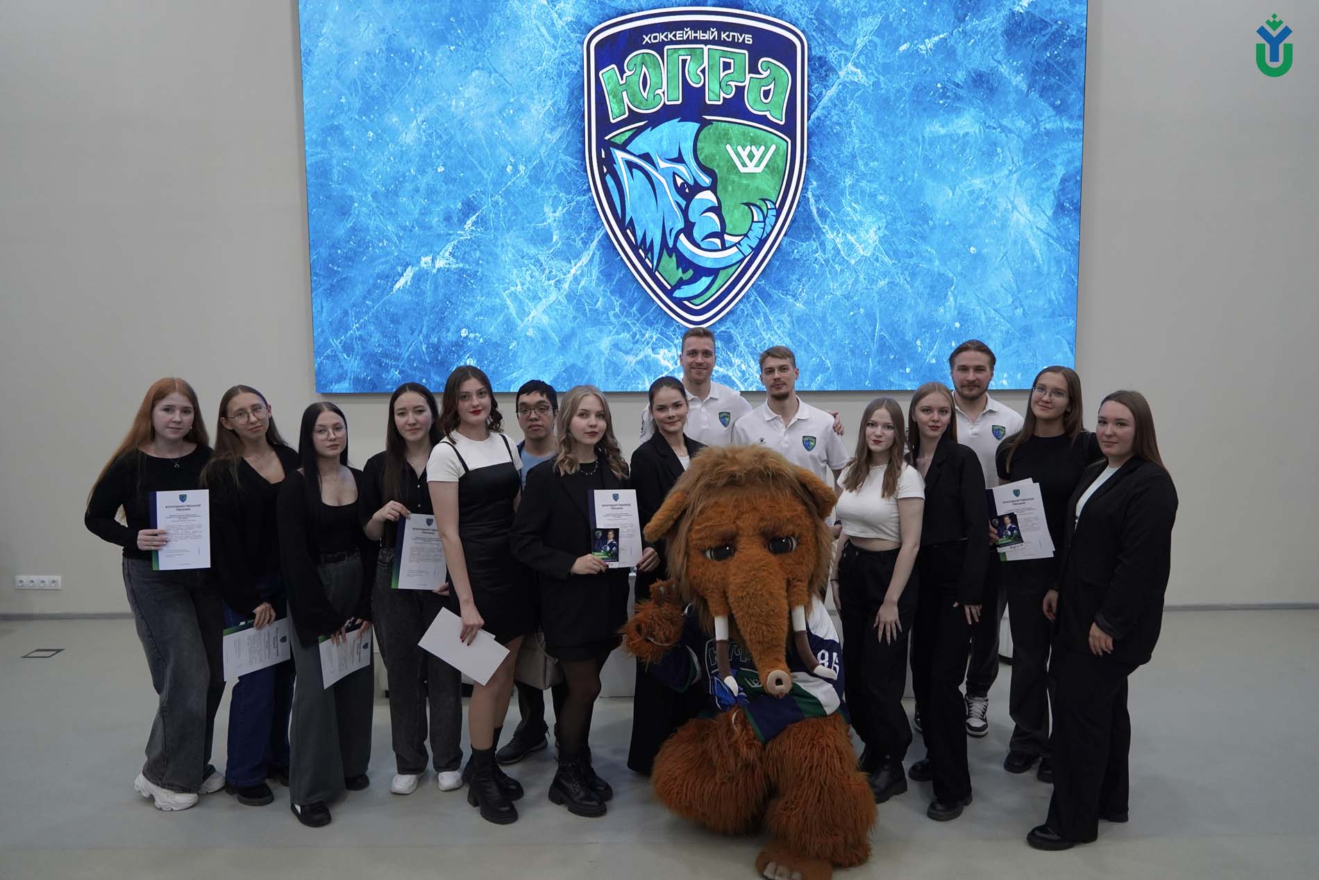 Авторы трёх лучших вопросов получили презент от клуба. А в самом начале встречи студентам-волонтёрам «Art-project» вручили благодарность от Ассоциации «Академия хоккея «Югра». После встречи прошла автограф-сессия. Добавим, что студенты ЮГУ могут посещать матчи хоккейного клуба бесплатно (вход 6-9, сектор E).