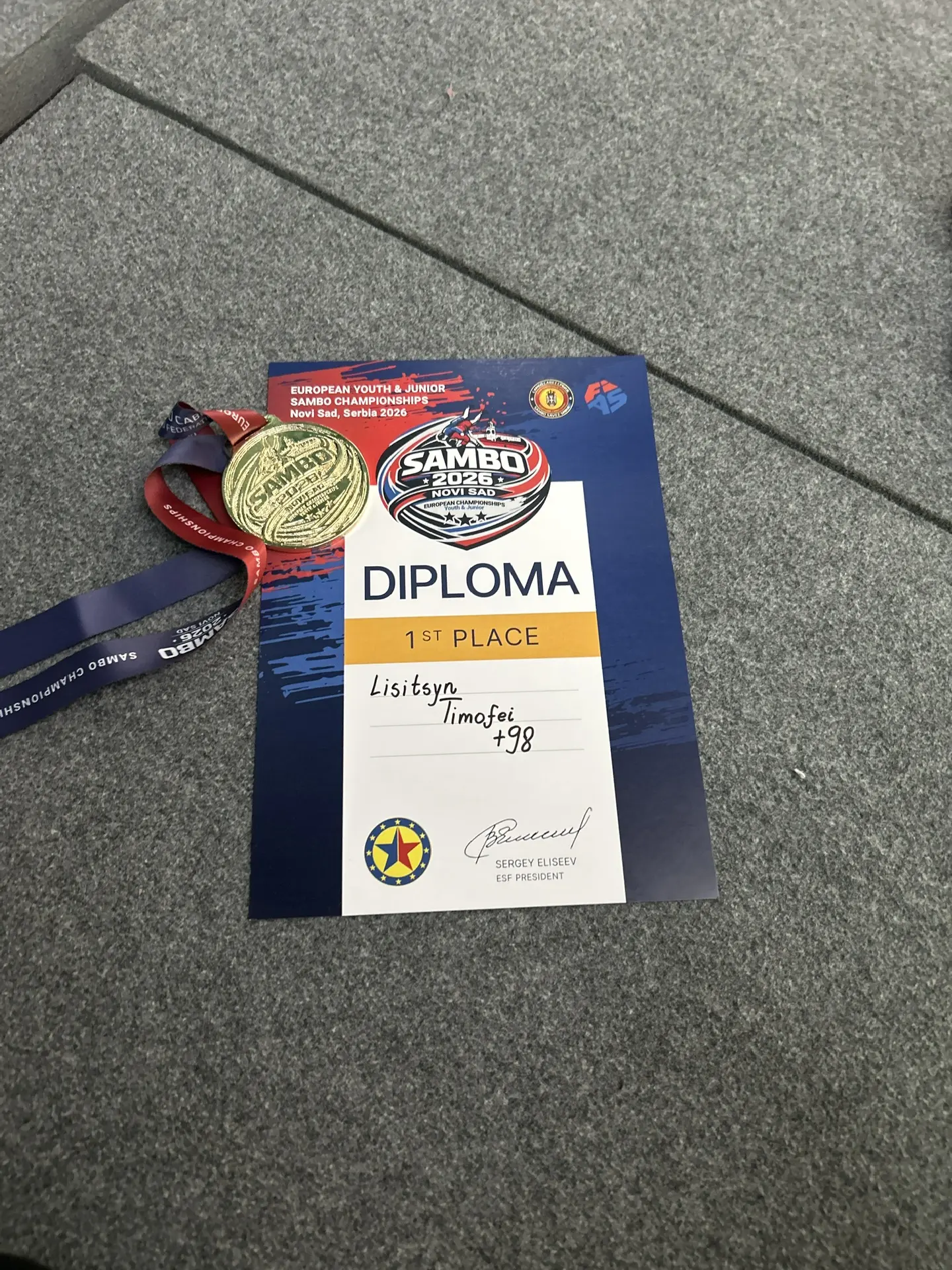 В эти дни, с 21 по 23 апреля 2026 года, город Нови-Сад принимает сильнейших молодых самбистов. В возрастной категории «юниоры и юниорки» (2006–2008 г.р., 18–20 лет) нашему Тимофею не было равных!