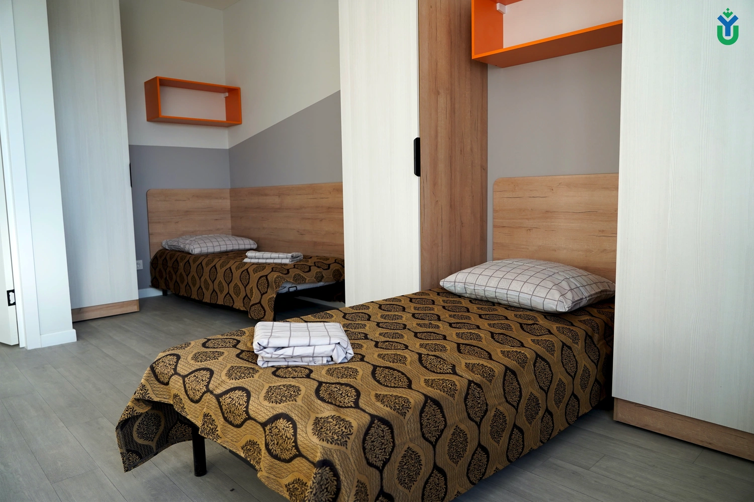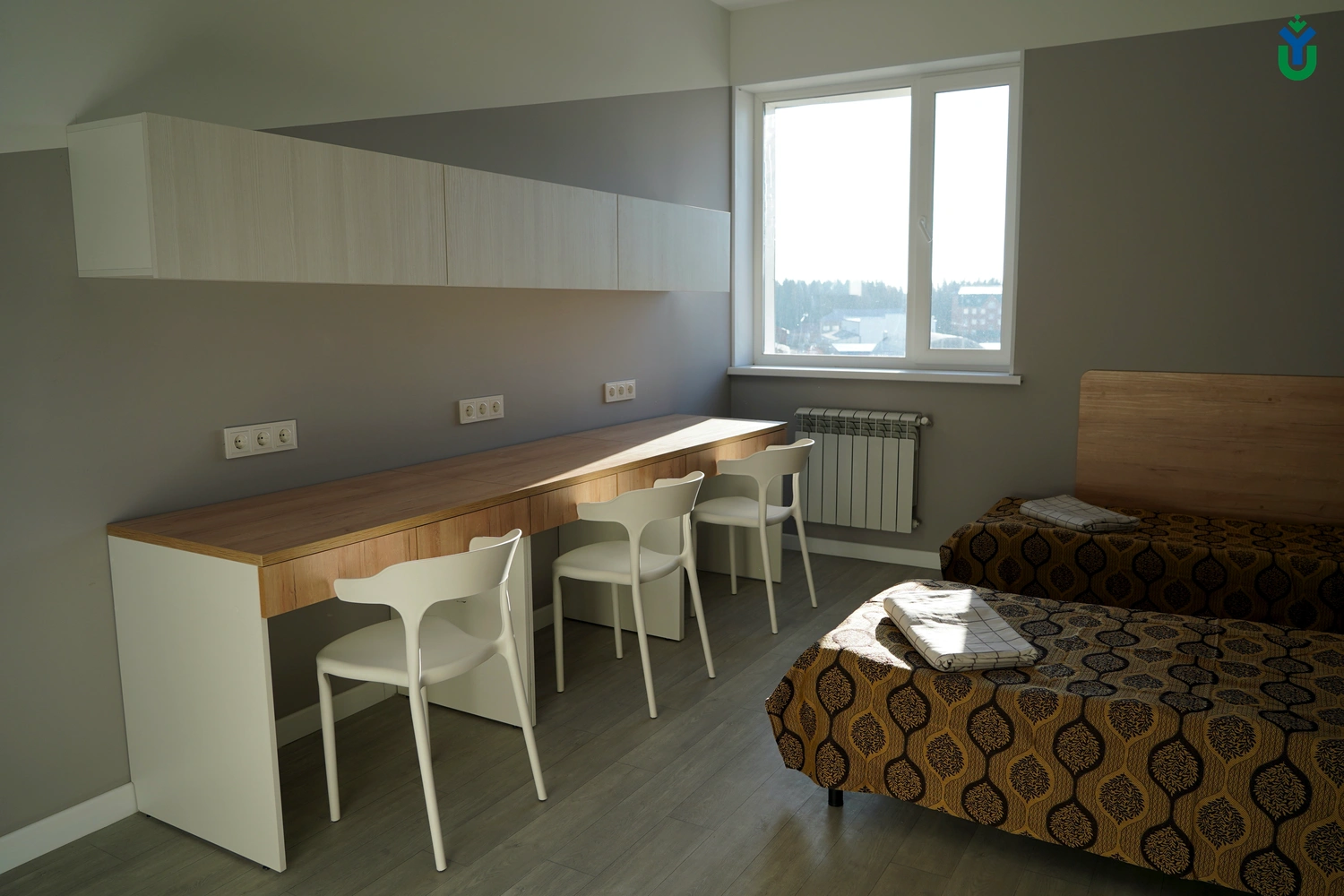 Современный жилой комплекс «Студенческий городок» расположен в самом крупном микрорайоне города Ханты-Мансийск. Студентов размещают в двухкомнатных квартирах, оснащённых необходимыми предметами мебели. В каждой квартире есть отдельная кухня с электрической плитой, санузел и душевая комната.